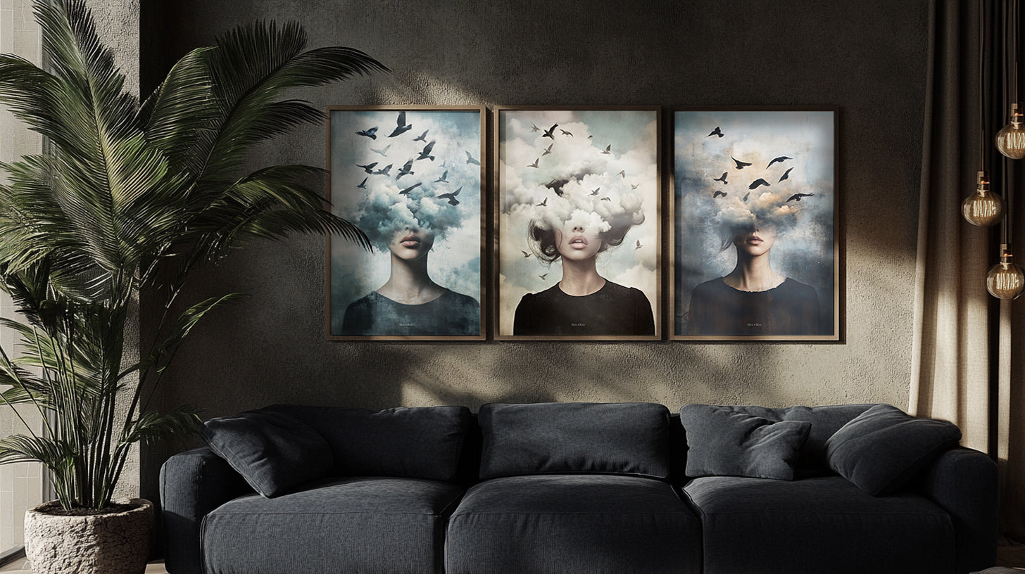 Die Kunstwerke spiegeln eine perfekte Symbiose aus traditionellem künstlerischen Handwerk und moderner digitaler Kunst wider – für inspirierende, zeitlose Kunst an deinen Wänden.